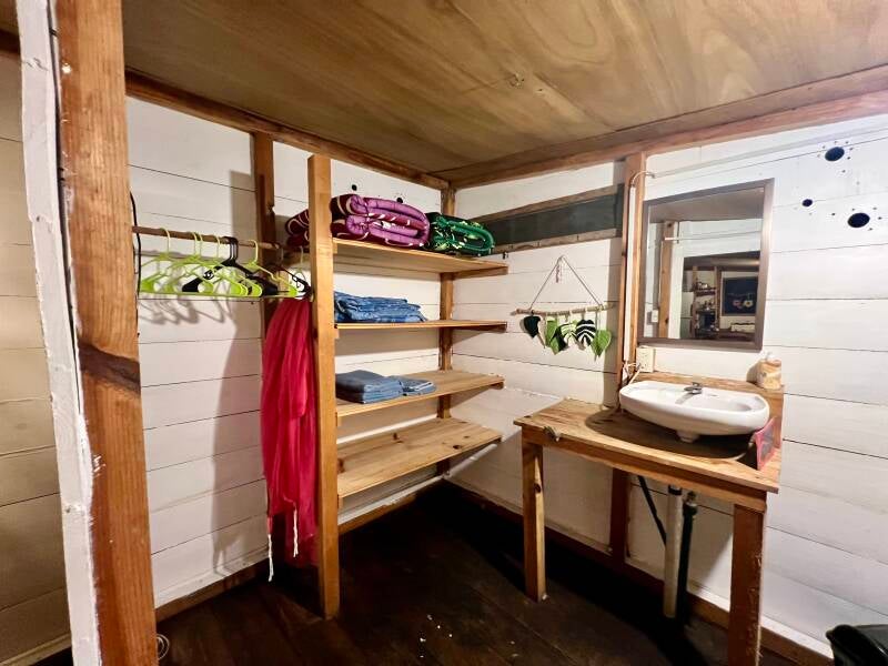 The cabin in the middle of nature is equipped with a comfortable double bed, mosquito nets, private bathroom and equipped kitchen, so you can enjoy a stay independently.